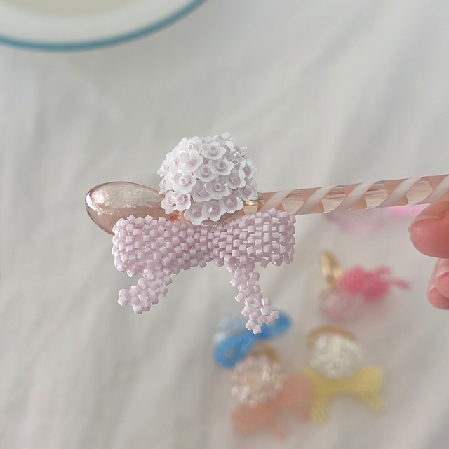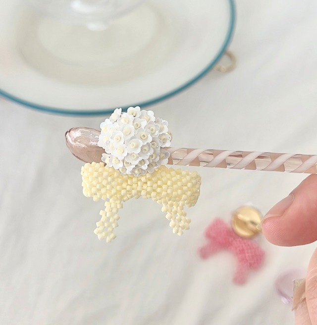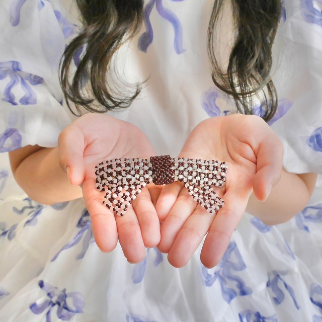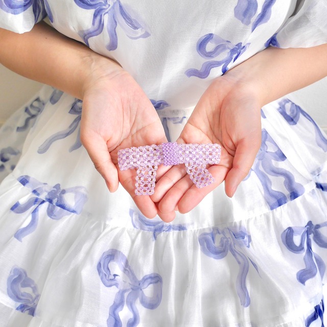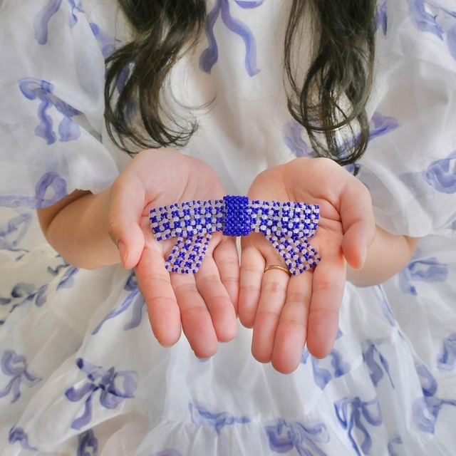 キャンディのようなツヤっとしたカラーに すりガラス加工のマットビーズを 合わせたリボンのバレッタです お気に入りのカラーで気分を上げたり 普段のコーディネートの差し色にも お使いいただけます。 サッと一つに留めたり ハーフアップ お団子など 色んなアレンジにご使用いただけます 太めのバレッタになっておりますので 多毛さんにもおすすめです! (全ての方に適応できるかは分かりません) 長く使っていただけますように 接着剤を極力抑えた作りになっております 金属部分はテグスを通しておりますので 接着剤による変色を防ぐ使用に 汚れはサッと拭いていただけますと 長持ちします 皆さんのお気に入りが沢山入った クローゼットの仲間入りできますように
