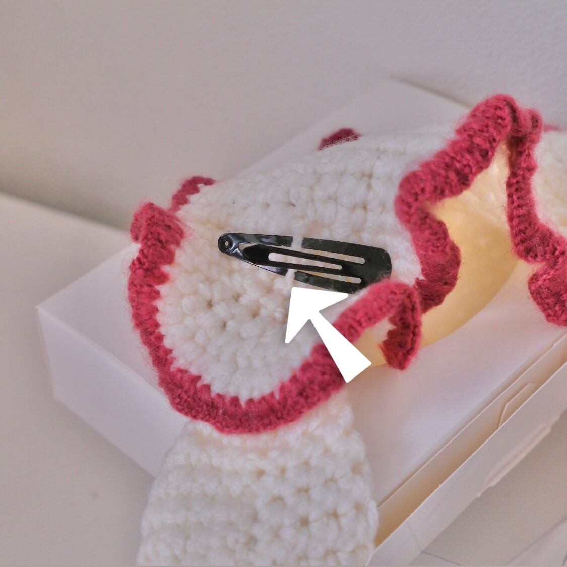 写真のぱっちんピンをお付けする事が可能ですので、ピン希望の方はお知らせくださいませ。